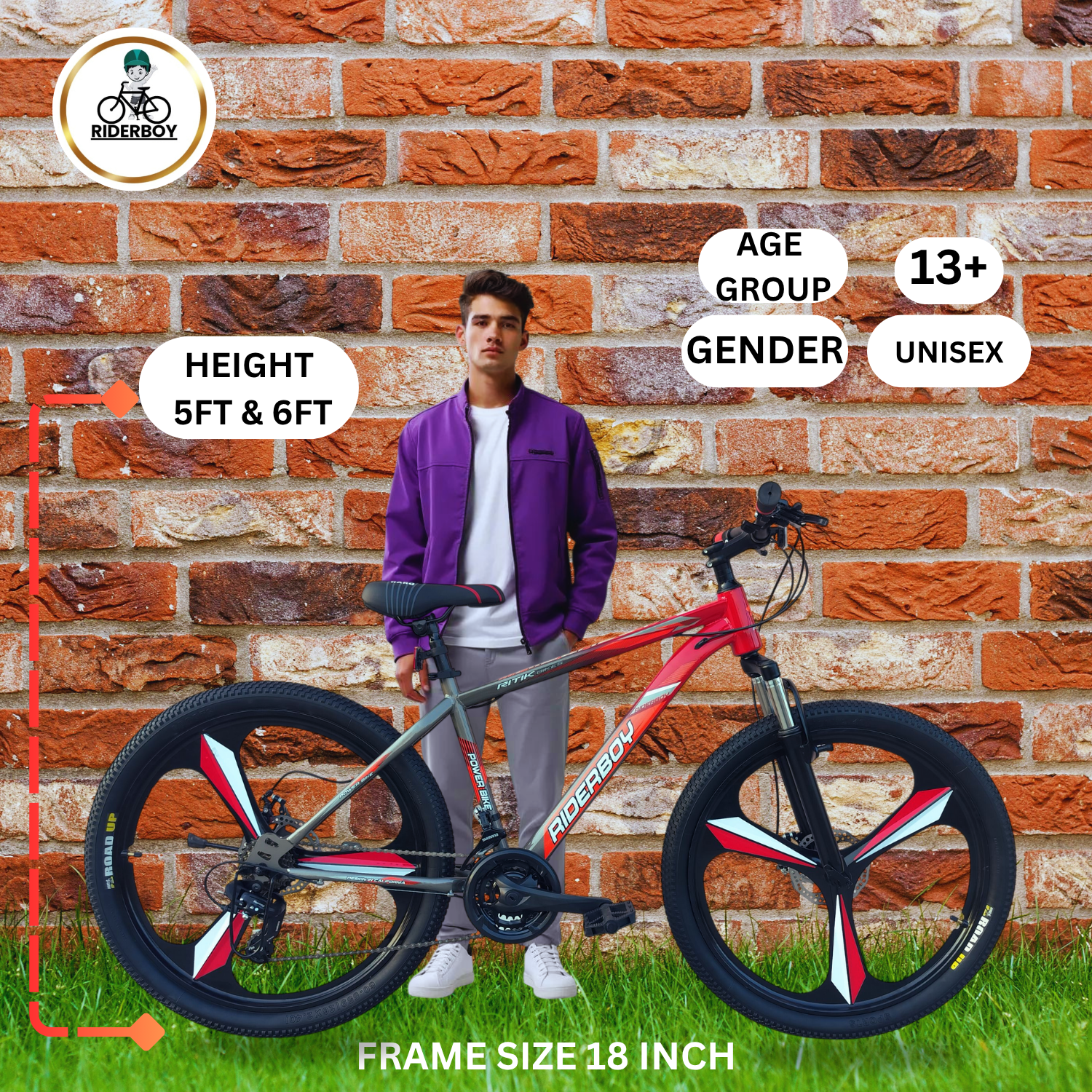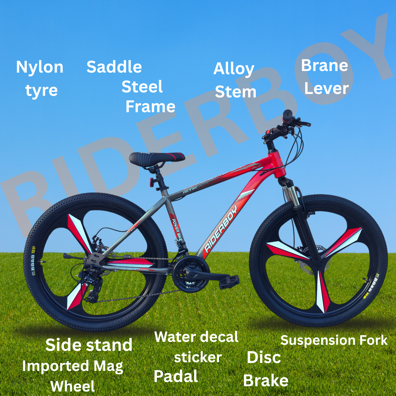 RIDERBOY 26 Inch Mountain Bike 21 Gear Mag Wheel 3/6-Spoke Wheels