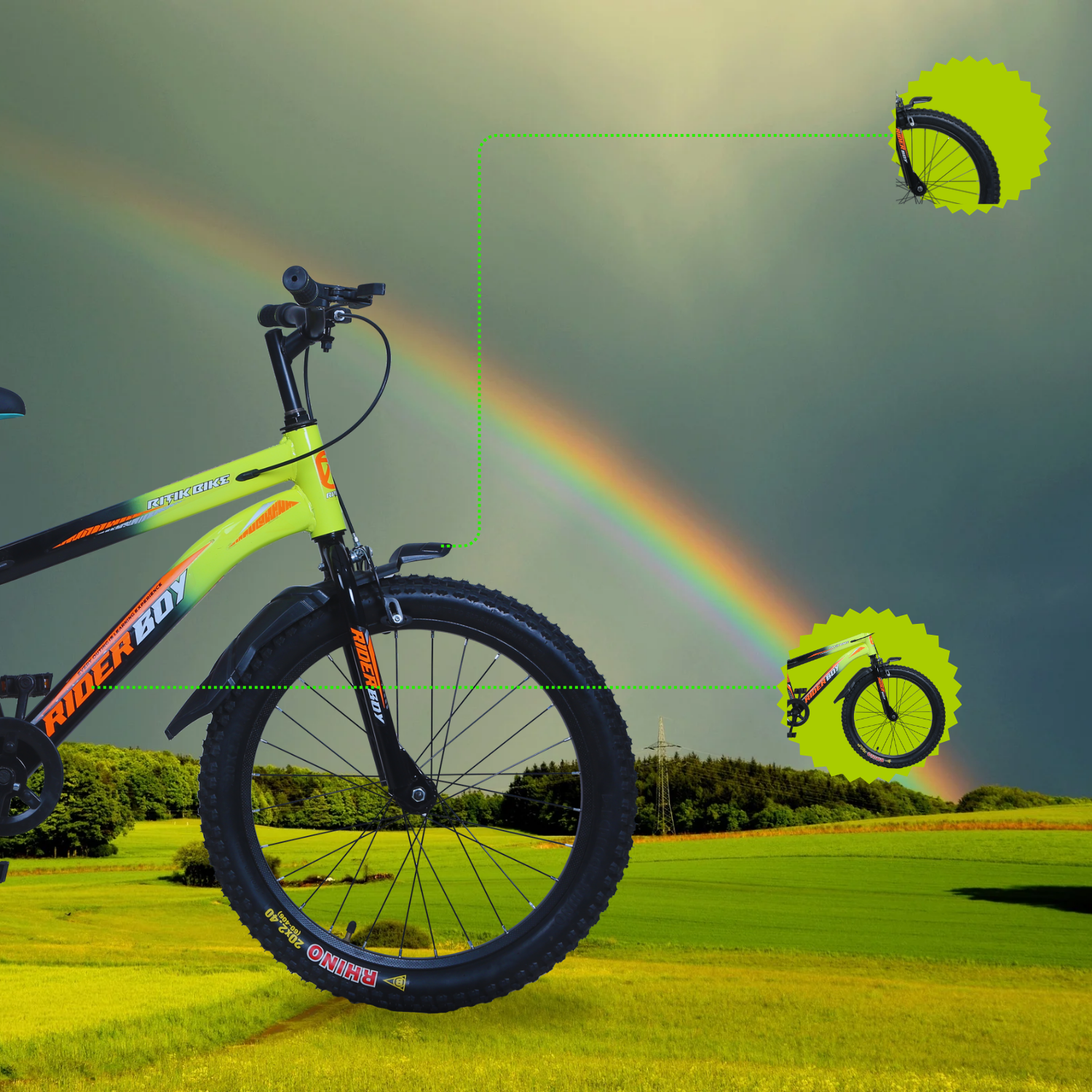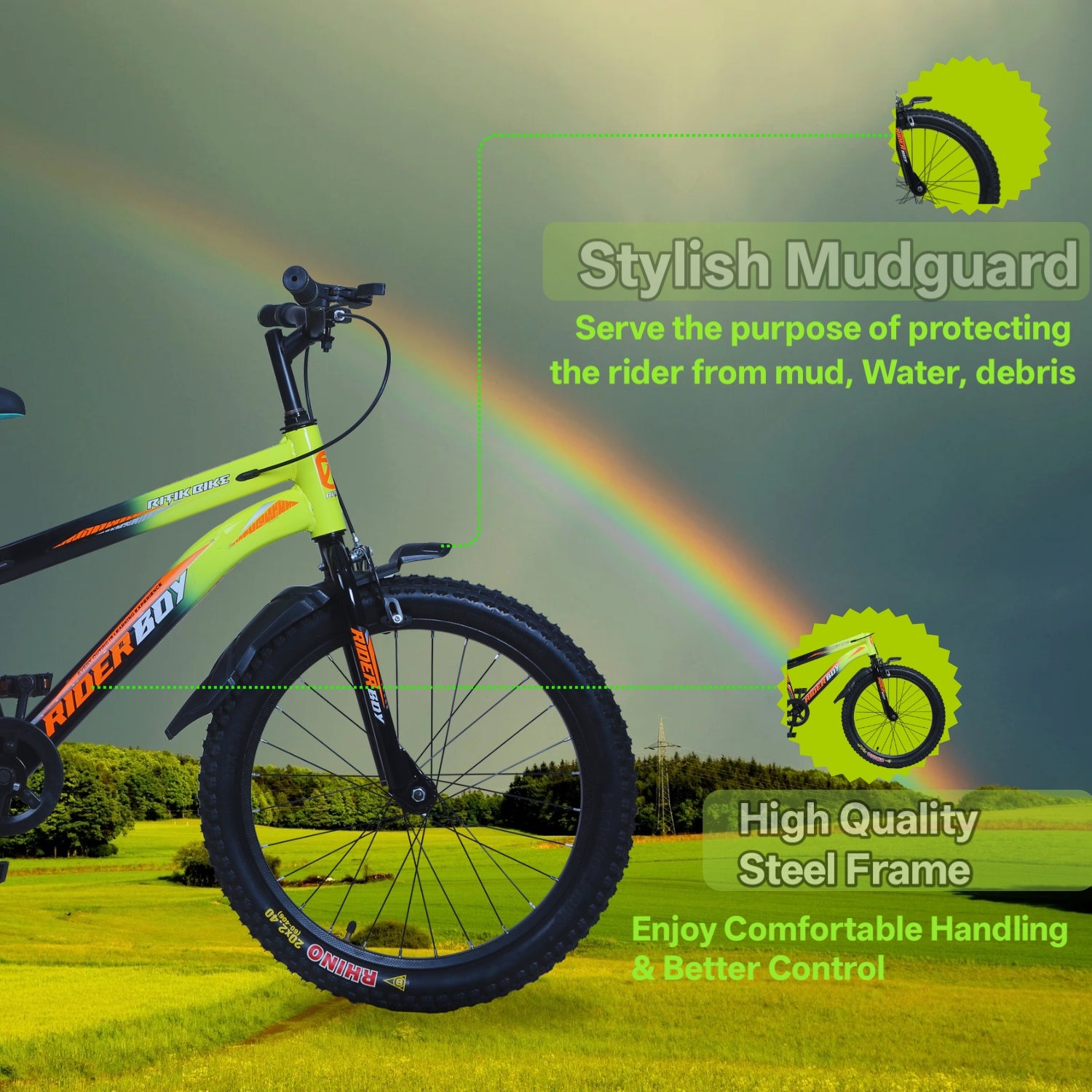 The RIDERBOY Georgia 20T Kids Cycle is a kids' bicycle designed for safety, comfort, and simple riding for young children. The "20T" refers to the 20-inch wheel size, which is a standard size for this age group.